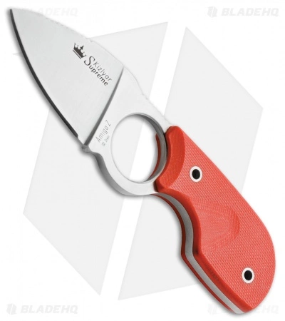 This Amigo model is outfitted with a D2 steel blade with a satin finish. The Amigo Z was designed from the ground up to be a class leading neck knife. It has just about everything you’re looking for in a small everyday fixed blade, including consideration for safety, size and weight, ease of extraction, premium materials, and uncompromising utility. This Amigo Z has a full-tang blade with lightly textured orange G-10 scales. The index finger ring ensures a reliably grip in all conditions. An exciting element of the Amigo is the sturdy, yet lightweight G-10 sheath.