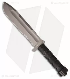 The blade is tough AUS-8 stainless steel with a thickness of 5mm, providing you the heft you need for larger chopping tasks. The gray TiNi finish has been laser engraved with a ruler and includes a specially designed spine bevel for breaking tough materials like bone. Large fullers reduce weight and improve balance while the aggressive serrated edge makes short work of straps, webbing and cordage. A highly textured black hollow handle offers excellent traction in hand. Unscrew the pommel of the knife to reveal a hollow compartment with a basic survival kit that can be tailored to your needs. With a full MOLLE compatible ballistic nylon sheath, you can select multiple carry options to keep your Survivalist X close at hand.