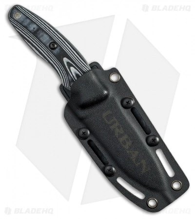 The 3.75″ Niolox stainless steel blade features a large belly and slight recurved cutting edge. Contoured gray and black G-10 handle scales are ergonomic and comfortable in hand. Easily carry the Urban with the included black kydex belt sheath.