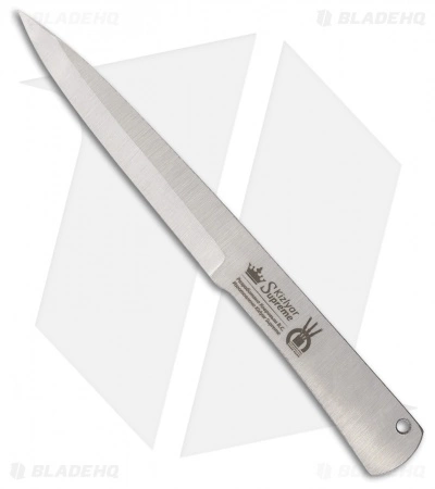 The Kizlay Supreme Vyatiz throwing knife is the prefect addition to your throwing kit. Made of tempered stainless steel, this rugged knife has a brushed satin finish and laser engraved logo. The 5.25″ unsharpened blade edge is great for beginners looking to minimize accidents, while more experienced users can sharpen the edge for more applications.