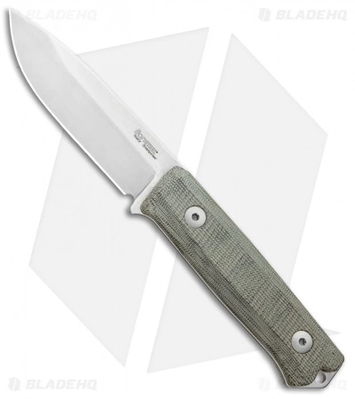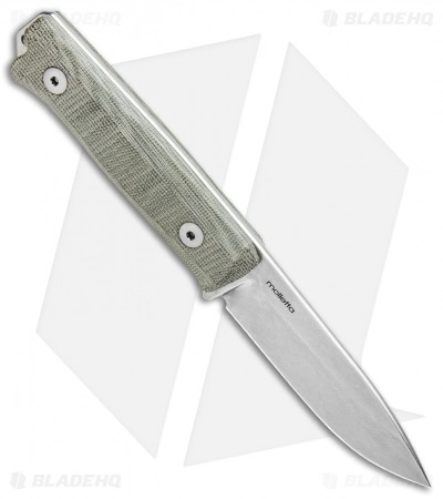 This model of the LionSteel Bushcraft B-40 sports a textured green micarta handle with a stonewashed blade made from Sleipner steel.