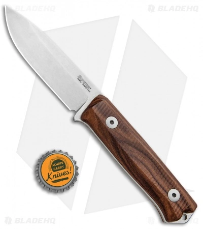 This model of the LionSteel Bushcraft B-40 sports a textured santos wood handle with a stonewashed blade made from Sleipner steel.