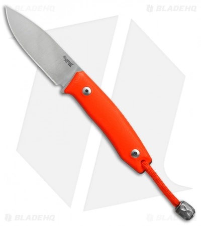 - Orange G-10 handle scales on a full tang.