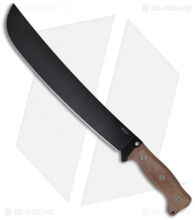 The MCKF M5-B features a full-tang AISI 1075 plus Chrome carbon steel blade with a burnished black finish. The blade is 5mm thick with a convex grind. Contoured micarta handles provide a strong gripping surface and the lanyard hole makes drawing this knife from the included Cordura nylon sheath all the more easy.