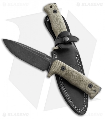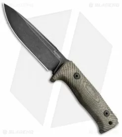This T5 fixed blade is outfitted with a green micarta handle and a black stonewash finished blade. The LionSteel T5 is a tough fixed blade built for managing any daily cutting chore. It has a solid micarta handle milled from a single piece of micarta. The handle wraps around the full tang blade providing a comfortable grip, free from any troubling hot spots. It has an extended tang that serves as a striker or glass breaker. Item includes MOLLE equipped leather sheath.