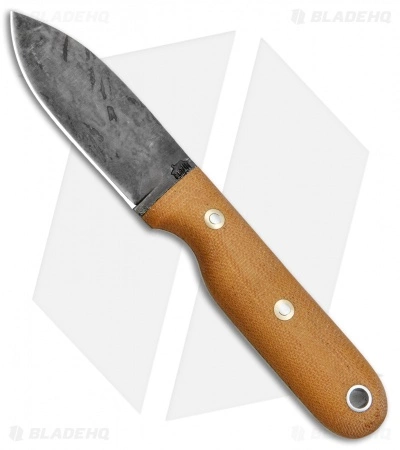 This version of the Bushbaby is equipped with matte natural micarta handle and a patina finished blade made from 1075 high carbon steel.