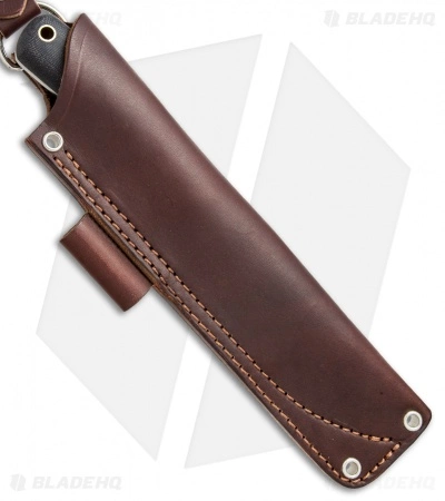 This Bush Hunter model has a satin finished blade and a matte black micarta handle. The Gary Wines Bush Hunter features a scandi ground O1 steel blade for edge durability and rolling resistance. It has a slightly larger size and a thicker blade for managing any difficult cutting chore. The bead blasted canvas Micarta handle offers plenty to hold on to, while all but removing the fear of hot spots around the edges. The Bush Hunter includes a premium JRE leather sheath for comfortable carry.