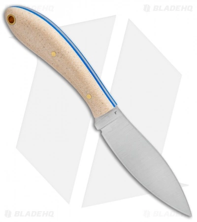 This Small Northern Hunter model has a snakeskin micarta handle with blue lilners and a 3.25″ blade with a satin finish.