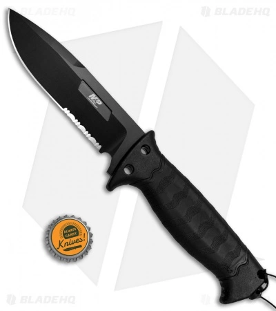 - Stainless steel blade with a partially serrated edge for versatile use.