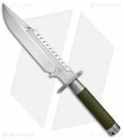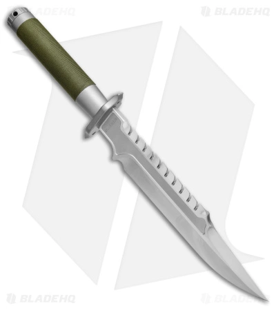 - Hand rubbed satin Bohler M390 steel blade with a sharpened clip point and saw tooth spine.