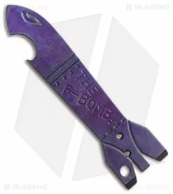 Arm yourself with The F-Bomb, a Matt Cucchiara designed money clip and pocket tool. Aside from the cool factor that this custom level piece offers, its got a crowd-pleasing bottle opener and a pry bar. This one features purple anodized titanium construction with a bead blasted clip.