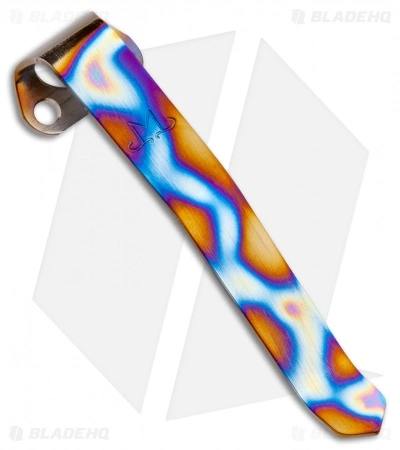 This Heretic Manticore titanium deep carry pocket clip has a snake flame stripe finish. If you’ve always loved the Manticore knives, but are looking for a more streamlined pocket clip, look no further. Maverick customs has you covered!