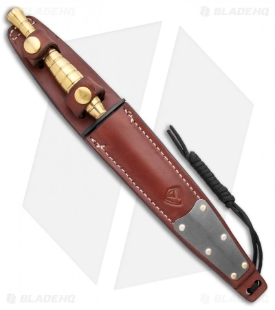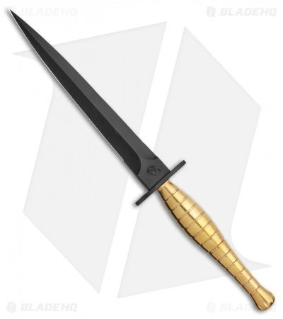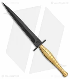 This FS Commando Dagger fixed blade has a brass handle and a black PVD coated blade.