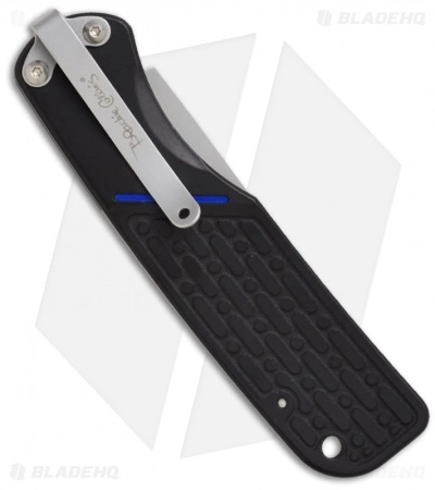 This stylish Blackie Collins designed automatic knife features an incredibly thin and lightweight handle that is ideal for everyday carry. The handle is black anodized aluminum with a nice texture for grip and a safety lock for the blade. Includes a deep carry pocket clip (tip-down). The bead blast finished ATS-34 stainless steel blade has a partially serrated edge. From what we understand Randall King’s company has a hand in the production of this knife.