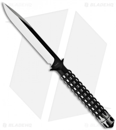 The A.D.O. (Alpha Detachment Operative) is an extraordinary fixed blade knife from Microtech. This Limited Edition ADO features a two-tone (satin/black) finished drop point blade (plain) and handle with a waffle-style texture. This knife follows the design of Chris Reeve fixed blades with a hollow handle, accessed by unscrewing the glass breaker tip. It is made from a solid billet of stainless steel. The A.D.O. includes a composite sheath with a spring loaded tab to secure knife and a 2″ steel clip for belt carry.