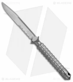 The A.D.O. (Alpha Detachment Operative) is an extraordinary fixed blade knife from Microtech. This ADO features a stonewash finished single edge blade (serrated) and handle with a waffle-style texture. This knife follows the design of Chris Reeve fixed blades with a hollow handle, accessed by unscrewing the glass breaker tip. It is made from a solid billet of stainless steel. The A.D.O. includes a composite sheath with a spring loaded tab to secure knife and a 2″ steel clip for belt carry.