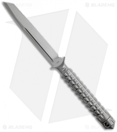 The A.D.O. (Alpha Detachment Operative) is an extraordinary fixed blade knife from Microtech. This ADO features a bead blast finished tanto blade (fully serrated) with a partly sharpened swedge spine (less than 1/4″ at the tip). The handle with a waffle-style texture and features a Chris Reeve style hollow handle, accessed by unscrewing the glass breaker tip. It is made from a solid billet of stainless steel. The A.D.O. includes a composite sheath with a spring loaded tab to secure knife and a 2″ steel clip for belt carry.