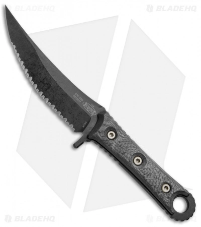 The SBK fixed blade is the design of Sebastijan Berengi of Borka Blades produced by Microtech Knives. It’s a fabulous combination of talent and the finished result is exquisite in all its particulars. This model features a fully serrated Bohler M390 blade with a DLC finish and carbon fiber scales.