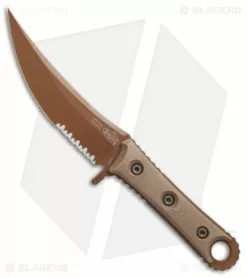 The SBK fixed blade is the design of Sebastijan Berengi of Borka Blades produced by Microtech Knives. It’s a fabulous combination of talent and the finished result is exquisite in all its particulars. This model features a partially serrated Bohler M390 blade with a tan PVD finish and tan G-10 handle scales.