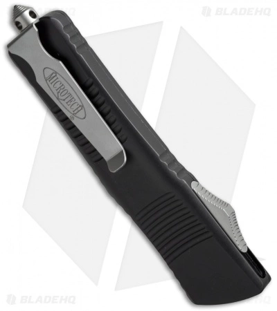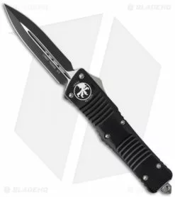 Microtech’s largest OTF production knife is named after the Troodon dinosaur. The Combat Troodon is the really large version of the popular Troodon. Despite the size, the handle feels slim and comfortable. The double-edged dagger style blade is both attractive and functional and the action is Microtech excellent.