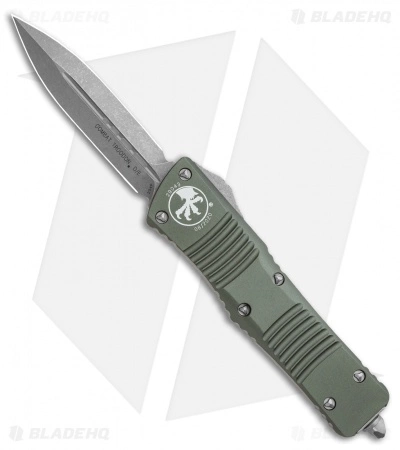 Microtech’s largest OTF production knife is named after the Troodon dinosaur. The Combat Troodon is the really large version of the popular Troodon. Despite the size the handle feels slim and comfortable. The blade is both attractive and functional and the action is excellent.