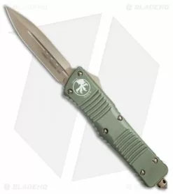 This Combat Troodon features an OD green anodized aluminum handle with bronzed steel glass breaker, pocket clip, and hardware. It has a bronze finished premium stainless steel dagger blade with plain edges.