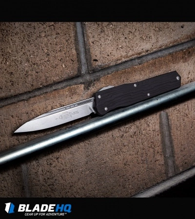 The Microtech Cypher OTF is a production version of the popular A. Marfione / D.C. Munroe custom collaboration. This model is equipped with a stonewashed single-edged blade. Its stylized handle is made from lightweight aluminum with a black anodized finish and a titanium milled pocket clip and endpiece.