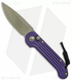 This model has a bronzed Elmax steel blade and a purple anodized handle with bronzed hardware.