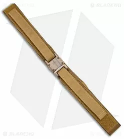 The Marfione Custom Apis is a high-quality product made in the USA. It’s made from coyote nylon with a titanium buckle. This Apis has a distressed dark brown finish with bronze hardware. The buckle is extremely secure with velcro straps. This belt rocks Microtech’s proprietary hardware, but includes a driver, in addition to spare hardware and a spike. If you like Microtech, awesome belts, or just America, the Apis is for you.