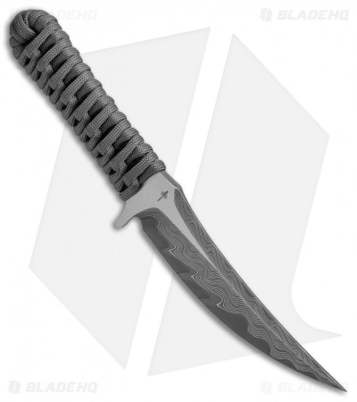 The SBK fixed blade is the design of Sebastijan Berengi of Borka Blades produced by Marfione Custom Knives. This Mini SBK model sports a stunning damascus blade with a gray paracord wrapped handle. It’s a fabulous combination of talent and the finished result is exquisite in all its particulars. Item includes a carbon fiber pattern kydex sheath with an ULTI clip attachment.