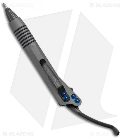 This Marfione Custom Siphon Pen features a Vapor blast finished titanium body with DLC internals and blued titanium hardware. The body is marked with the Marfione Dagger logo.