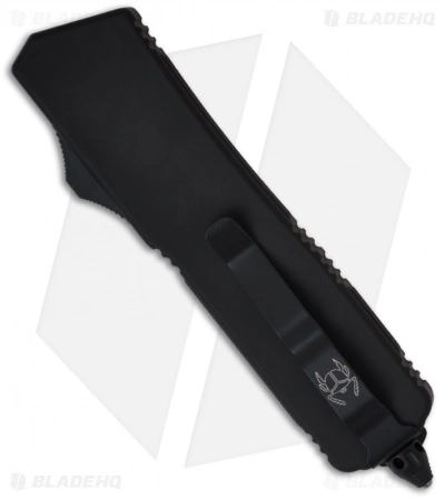 The Microtech Scarab is perhaps the mother of all out-the-front automatic knives. The Scarab is double action meaning it fires both out and in via the slide button located on the right side of the knife. Action, lock-up and quality are all top-notch Microtech.