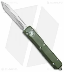 This Ultratech features a satin finished Spartan style blade with partially serrated cutting edges. It has a contoured, OD green anodized 6061-T6 aluminum handle with a bead blast finished pocket clip, glass breaker, and stainless steel hardware.