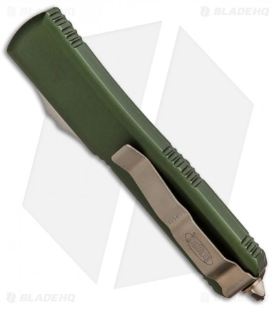 This Ultratech features a bronze stonewashed tanto blade with a plain edge. The T-6 aluminum handle is OD green anodized with bronzed pocket clip, glass breaker, and stainless steel hardware.