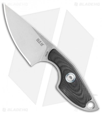 This MKM Mikro 1 fixed blade model was designed by legendary Danish knife maker Jesper Voxnaes, and is rocking a stonewashed Bohler M390 blade and a black G-10 handle. This compact blade comes with a leather sheath and neck band to be used as a neck knife.