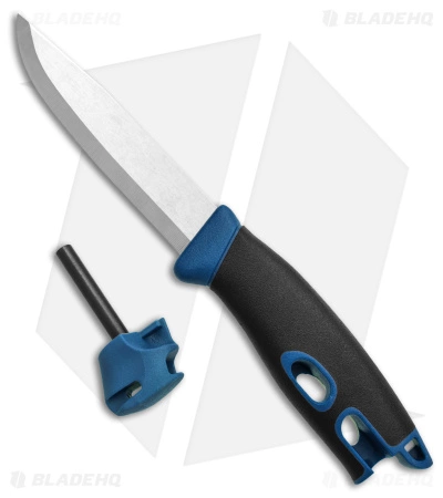 The Morakniv Companion Spark fixed blade knife is a powerful tool for bushcrafters, hunters, and outdoorsmen. It features a fire starter rod inside the handle, a clip point blade with a 27 degree scandi grind, and a right-angle spine for striking the fire starter. Its handle has a soft rubberized grip for a comfortable, high-friction grip, and a hard polymer sheath for belt carry. Upgrade your outdoor cutlery kit with this endlessly useful fixed blade.