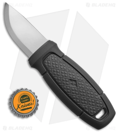 Sized for pocket carry, the Eldris fixed blade is proof that good things can come in small packages. Many would agree that the bulk of tasks encountered in the field, whether hiking, camping, hunting, or in everyday carry, don’t require a large blade. The real strength of this Morakniv fixed blade knife is that, like a folding knife, it carries with relative ease. Choose from pocket carry, neck carry, or throw it in a small pocket or pouch on your pack – the Morakniv Eldris delivers best-friend qualities in an everyday carry knife. This model has a black handle and a matching black polymer sheath.