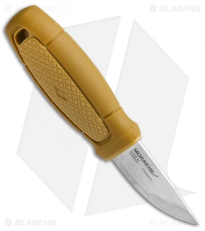 - Yellow rubber polymer handle offers classic Morakniv comfort and solid perch.