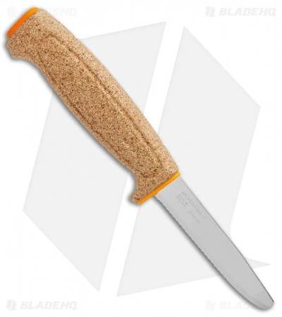 The Morakniv Floating Knife features a cork handle with bright orange accents. This makes the knife easy to find, and ensures that it won’t sink if dropped in water. The blade is made from stainless steel and is fully serrated with a blunt tip to avoid puncturing something accidentally. Comes with an orange sheath with a belt clip.