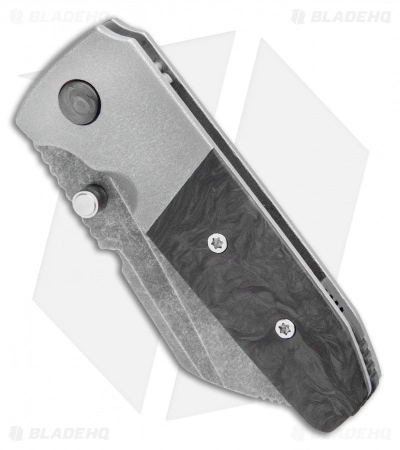 This Morrish Made Knives custom Sputnik is a stout frame lock folding knife built for heavy everyday use. Its blade is made from acid washed CPM-3V steel with thumb studs and two sections of jimping for added control. The titanium frame lock handle sports a forged carbon fiber inlay to match the pivot and provide a unified aesthetic. Comes fitted with a milled titanium pocket clip for comfortable tip-up carry.