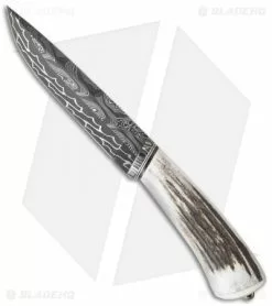 This premium fixed blade from Olamic Cutlery is a stellar piece that features a multi-bar nickel carbon mosaic Damascus (N.C.M.D.) steel blade! It has a stag handle with G-10 and Micarta inserts as well as an NCMD guard. This Birch Series Elite fixed blade comes with a leather sheath.
