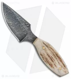 Pick up a dependable EDC fixed blade with a solid Olamic Cutlery build! This compact neck knife features a harpoon blade made from damascus steel and a stag horn handle. The stag horn scales have been smooth and rounded for a secure and comfortable grip. Item includes a leather sheath that offers multiple carrying options. Experience the unsurpassed quality of Olamic Cutlery with the Harpoon Neck Knife.