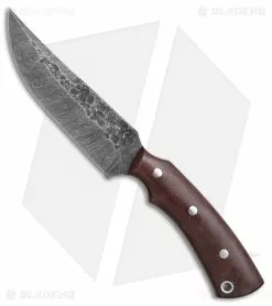 The Kovda is a fine handcrafted fixed blade from Olamic Cutlery. Its full-tang high carbon vanadium Damascus trailing point blade has an upswept tip and swedge. The handle is fitted with rounded Micarta scales, offering a sleek aesthetic and a comfortable grip. Includes a leather sheath with belt loop and dangler attachment.