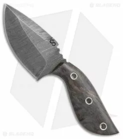 The Listok Skinner is a stout knife with a full-tang, wide-bellied blade and an ergonomic handle design. This model features Gray Karelian Birch Burl scales and a Damascus blade with ample jimping on the thumb ramp. It includes a dark leather sheath with a dangler attachment for comfortable belt carry.