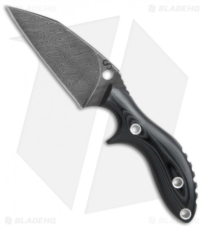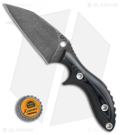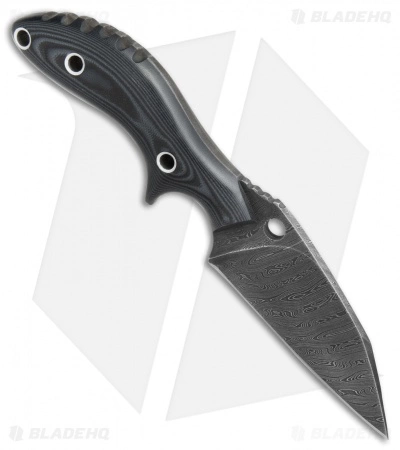 This Experimental Prototype fixed blade from Olamic Cutlery features a Damascus steel wharncliffe blade and an ergonomic black/gray G-10 handle. Includes a genuine leather sheath with dangler attachment for comfortable carry.