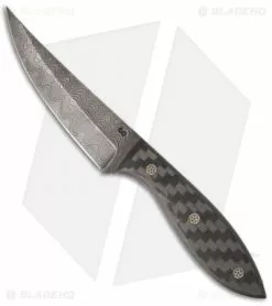 This 5″ Persian knife from Olamic Cutlery is stellar. It has a high carbon vanadium Damascus steel full-tang blade with carbon fiber scales. Includes a premium leather sheath.
