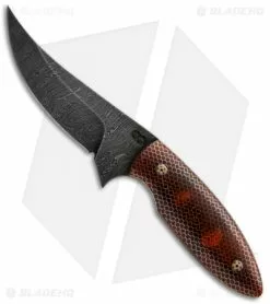 This Persian-style neck knife has a beautiful HCVD Damascus steel blade and C-Tek scales, which is an aluminum mesh that’s filled with an epoxy resin. The Persian fixed blade comes with a premium leather sheath.