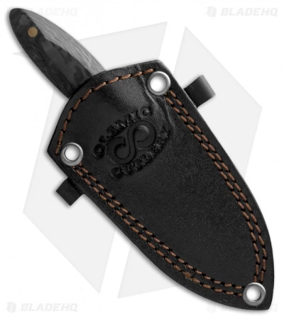 This Persian-style neck knife has a beautiful HCVD Damascus steel blade and contoured carbon fiber scales. The Persian fixed blade comes with a premium leather sheath.