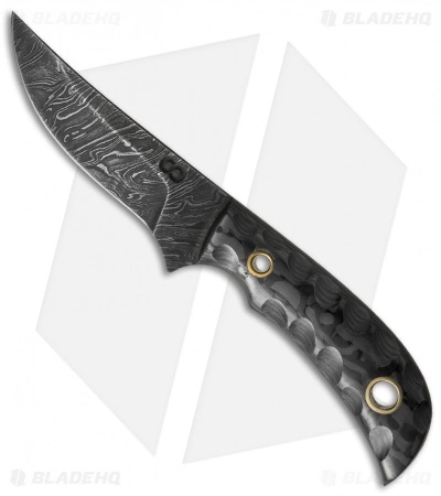 This Persian style neck knife has a beautiful HCVD Damascus steel blade and carbon fiber scales with scalloped edges. The Persian fixed blade comes with a premium leather sheath.