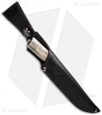 This Stag Series fixed blade is an exquisite knife. For those of you who value the beauty of stag, you’ll love this Olamic fixed blade with its unique stag handle. The dark colored bolster is Micarta and G-10 fittings are also employed. An HVCD steel drop point blade rounds out this collection-worthy piece. Includes a premium leather sheath.